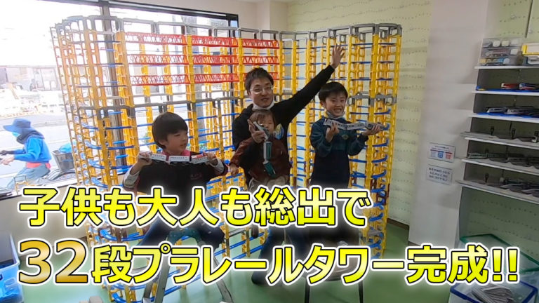 こともも大人もみんな総出で32段プラレールタワー作成してみた!プラレールラウンジ